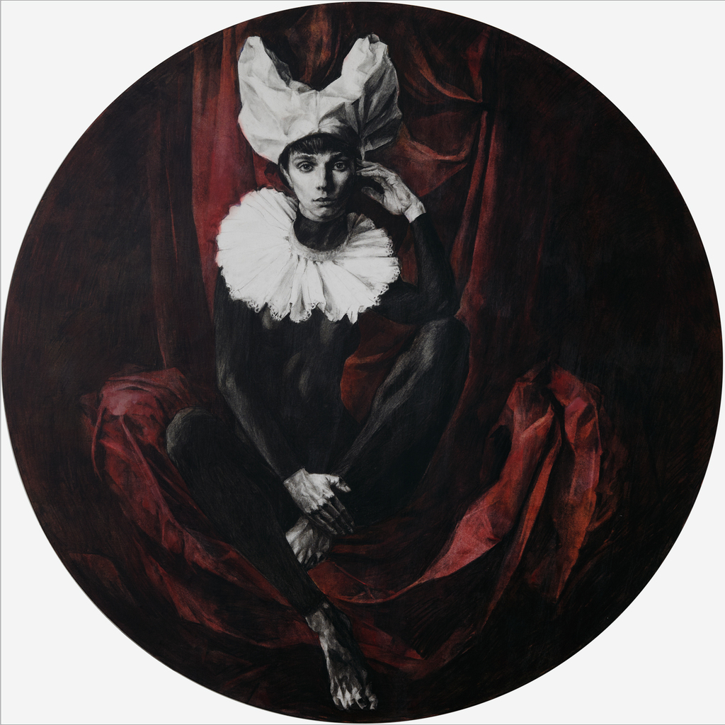 Papier collé sur bois, fusain, pigment sec. 40″ / 40  » / 2 «  2025